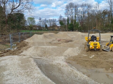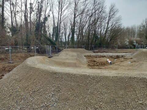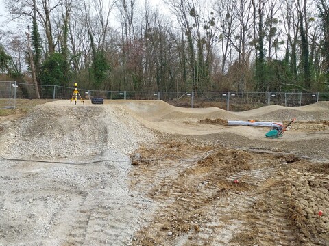 Implantation du pumptrack en cours. Les terrassements se poursuivront pendant 2 à 3 semaines pour créer l’assise du pumptrack.