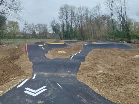 Création d’un pumptrack équipé d’une piste dédiée aux débutants et aux niveaux intermédiaires, une piste de race et une piste mixte pour les niveaux confirmés.